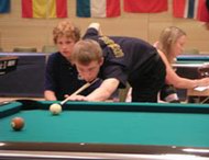 Затем состоялись состязания по «восьмёрке». И здесь героем соревнований оказался Артём Кошевой. В минувшем году он уже побывал на первенстве Европы в Харкани, и тогда ему пришлось довольствоваться серебряной медалью по «девятке». Теперь он, наконец, осуществил свою давнишнюю мечту и завоевал чемпионский титул. В финале ему довелось встретиться со шведом Понтусом Лагерквистом. Поединок получился напряжённым, оба спортсмена волновались и делали ошибки. Сначала две партии взял швед, и это было серьёзной заявкой на победу. Однако он не смог удержать своё преимущество. Артёму же, напротив, удалось собраться и вырваться вперёд. Поединок завершился со счётом 5:3 в пользу Кошевого. Очень хорошо показал себя Евгений Талов. Он тоже уверенно шёл к золоту, но… Пути соревнований неисповедимы, и в полуфинале ему довелось сразиться ни с кем иным как с Артёмом Кошевым! До этого ребята уже играли друг с другом в предварительном круге, и Талов сумел одержать верх 5:3. В 1/2 финала он уступил Кошевому со счётом 2:5, но это не помешало ему принести в копилку украинской сборной бронзовую награду.