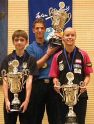 Зато не обошлось без призовых мест в командном первенстве. Украинские пулисты заняли второе место. Сперва они обыграли греков 3:0, затем уступили полякам 2:1, а после этого выиграли у голландцев 2:1 и финнов 3:0. Выход в финал им вновь преградил грозный соперник в лице сборной Польши, но на сей раз украинские спортсмены учли свои промахи и одолели поляков 2:1. В финальном поединке золото досталось австрийцам, но наша команда смотрелась уверенно и смогла составить им достойную конкуренцию.