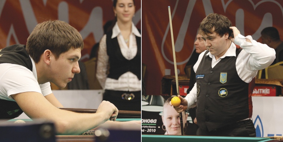 Первую партию выиграл Ярослав, во второй после отыгрыша Александра он забивает сложнейший абриколь, однако реализовать позицию ему не удается и вновь начинается борьба. Наконец, при счете 3:1 в свою пользу Ярослав забивает красивого свояка на скате через весь стол и собирает недостающие 5 шаров. Счет встречи становится 2-0 в его пользу.