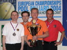 Чемпионами Европы в командном первенстве стала сборная Нидерландов, победившая в решающем поединке команду Германии - 2:1. У женщин золотые медали выиграли пулистки сборной Германии, которые в финале победили датчанок - 2:1. Мужская сборная Украины «отметилась» только двумя поражениями в начале чемпионата: Украина - Словения - 1:2, Украина - Франция - 0:3.