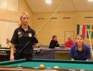 Затем состоялись состязания по «восьмёрке». И здесь героем соревнований оказался Артём Кошевой. В минувшем году он уже побывал на первенстве Европы в Харкани, и тогда ему пришлось довольствоваться серебряной медалью по «девятке». Теперь он, наконец, осуществил свою давнишнюю мечту и завоевал чемпионский титул. В финале ему довелось встретиться со шведом Понтусом Лагерквистом. Поединок получился напряжённым, оба спортсмена волновались и делали ошибки. Сначала две партии взял швед, и это было серьёзной заявкой на победу. Однако он не смог удержать своё преимущество. Артёму же, напротив, удалось собраться и вырваться вперёд. Поединок завершился со счётом 5:3 в пользу Кошевого. Очень хорошо показал себя Евгений Талов. Он тоже уверенно шёл к золоту, но… Пути соревнований неисповедимы, и в полуфинале ему довелось сразиться ни с кем иным как с Артёмом Кошевым! До этого ребята уже играли друг с другом в предварительном круге, и Талов сумел одержать верх 5:3. В 1/2 финала он уступил Кошевому со счётом 2:5, но это не помешало ему принести в копилку украинской сборной бронзовую награду.