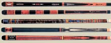 Следующий кий - Red star ("Красная звезда"), на нем не указано количество звездочек, но он находится между киями с двумя и тремя "звездочками". У этого кия, надо отметить, шафт сделан из кевлара и поэтому получается довольно интересный мягкий удар. Для классных игроков, которые длительное время используют старые традиционные кии, конечно, такой удар непривычен. Но тем не менее, преимущество кивлара в том, что он всегда прямой, практически не ломается. Такой кий рассчитан в основном на любителя. Есть определенная категория игроков, которые играют подобными киями и они им нравятся.