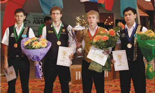 Самой внушительной по количеству игроков, что вполне объяснимо, конечно была команда Казахстана, хозяев турнира. Открытый статус чемпионата дал прекрасную возможность испытать свои силы в бильярдном спорте спортсменам разного уровня подготовки, и казахские бильярдисты, не преминули этим воспользоваться. В составе их команды – как начинающие и пока малоизвестные в спортивных кругах игроки, так и спортсмены, чей бильярдный авторитет трудно оспорить: трижды чемпион мира, заслуженный мастер спорта Каныбек Сагындыков, мастер спорта международного класса Алихан Каранеев, мастер спорта международного класса Гарри Акопов, мастер спорта международного класса Эмиль Мударисов.