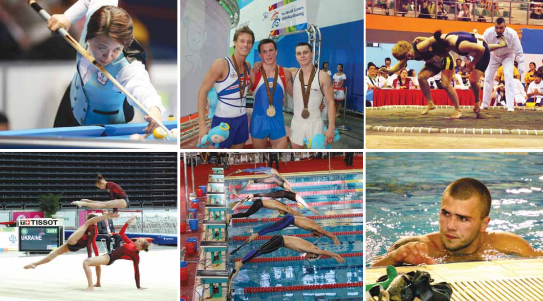 Спортсмены Украины принимает участие во Всемирных Играх с 2001 года. Тогда, в Японии, она стала 33-й по числу медалей среди 93 участников. В Дуйсбурге-2005 (Германия), где было завоевано 7 золотых, 6 серебряных и 8 бронзовых медалей, Украина заняла 7 место. На Всемирных Играх в Тайване - 6 место из 105 государств-участниц. С каждым разом сборная Украины уверенно продвигалась все выше, демонстрируя уровень развития спорта в нашей стране. В настоящее время в Украине признаны 86 вида спорта, не входящих в программу Олимпийских Игр, которые объединяют почти 300 тысяч человек, и это число постоянно растет.