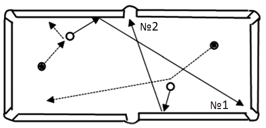 2.Удар своего шара сначала в борт или несколько бортов, а затем в прицельный шар.