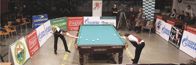 Первую партию выиграл Ярослав, во второй после отыгрыша Александра он забивает сложнейший абриколь, однако реализовать позицию ему не удается и вновь начинается борьба. Наконец, при счете 3:1 в свою пользу Ярослав забивает красивого свояка на скате через весь стол и собирает недостающие 5 шаров. Счет встречи становится 2-0 в его пользу.