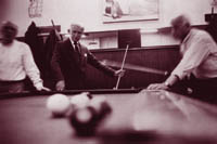 - Иногда я захожу на Бродвее в клуб, где играет старик, которому под девяносто. Уже и глаза у него слабые, и рука нетвердая. Но если бы ему связали руки и ноги и завязали глаза, он все равно выиграл бы у меня, потому что я играю в русский бильярд, а пул - игра совершенно другая. И надо сказать, это игра только для высоких профессионалов. Чтобы играть в пул, надо уметь придать шару вращательное движение. Этому надо очень долго учиться.
