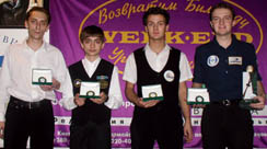Кто же мог составить конкуренцию россиянам и полякам из отечественных игроков? Специалисты придерживались мнения, что соперничать из нашими западными и северными соседями будет самый юный украинский спортсмен, серебряный призер юношеского чемпионата Европы в Венгрии четырнадцатилетний киевлянин Артем Кошевой. Вправе были ожидать болельщики яркой игры и еще от двух украинцев - Олега Мачтакова (Одесса) и Сергея Васьковского (Киев), которым не занимать турнирного опыта. Оба спортсмена, члены национальной сборной Украины, выступали на апрельском чемпионате Европы по пулу в Польше. Кстати, Сергей, свою игровую карьеру, совмещает с тренерской работой в школе бильярдного мастерства в Национальном университете физического воспитания и спорта.