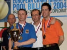 Чемпионами Европы в командном первенстве стала сборная Нидерландов, победившая в решающем поединке команду Германии - 2:1. У женщин золотые медали выиграли пулистки сборной Германии, которые в финале победили датчанок - 2:1. Мужская сборная Украины «отметилась» только двумя поражениями в начале чемпионата: Украина - Словения - 1:2, Украина - Франция - 0:3.