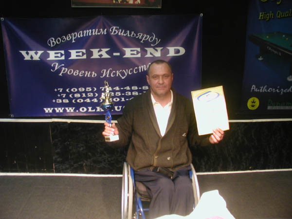 Как рассказал один из участников, председатель правления городской молодежной организации «Ирида», капитан сборной Украины по баскетболу Андрей Будник, практически все ребята сами зарабатывают себе на жизнь. Скажем, Александр Кузнецов — владелец магазина, Владимир Азин — инженер-испытатель по производству на заводе им. Артема, Сергей Почтарев и Сергей Кочевников - нотариусы. «Бильярд, спортивные танцы и баскетбол — мои любимые виды спорта, — говорит Андрей.— Поэтому предложение Национальной федерации спортивного бильярда Украины о совместной организации Кубка Киева принял с радостью. Планировалось, что в Кубке сыграют спортсмены практически со всех регионов Украины, но в последний момент не все, что задумывали получилось. Думаю, что в сентябре мы уже сможем провести всеукраинский Кубок среди инвалидов с нарушением опорно-двигательного аппарата. Знаю, что своих представителей готовы делегировать Донецк, Одесса, Полтава, Днепропетровск. Кстати, президент федерации спортивного бильярда Запорожья Валерий Горошко, который два дня внимательно наблюдал за ходом турнира, пообещал заняться развитием инваспорта в своем городе и заверил, что на следующих соревнованиях выступит запорожский спортсмен.
